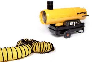 Недостаток описанных выше обогревателей полностью устранен в теплогенераторах "непрямого нагрева".Они оборудованы герметичным теплообменником и патрубком для отвода отработанных газов. Это позволяет подавать в отапливаемое помещение чистый теплый воздух. Фирма MASTER выпускает обогреватели этого типа мощностью от 25 до 180 кВт |